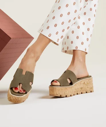 An elusive icon, the Kelly buckle always appears where it’s not expected. It slips freely from a bag to a shoe, repeatedly featured on boots, mules, loafers or sandals. Whether in gold, platinum, metal, or leather, in mini or maxi formats, it’s available in multiple styles for an endless number of bold looks.